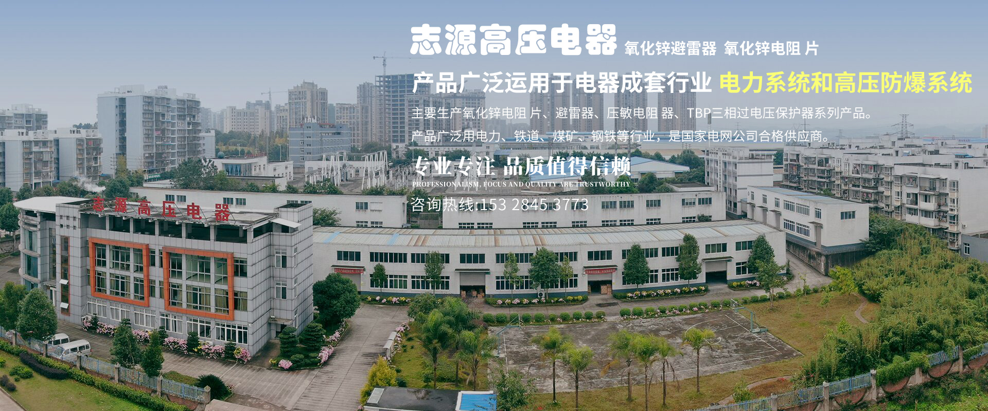 宜賓志源高壓電器有限公司(原慶豐實業公司),主要生產氧化鋅電阻片、避雷器、壓敏電阻器、TBP三相過電壓保護器系列產品,產品廣泛用電力、鐵道、煤礦、鋼鐵等行業,是國家電網公司合格供應商。公司2008年創建至今,堅持改革創新,揚行業品牌,努力吸收國內外先進技術,先后研創開發了220KV以下電壓等級氧化鋅避雷器系列產品、放電計數器、監測儀及高性能氧化鋅電阻片,形成了70萬支以上的年生產能力。